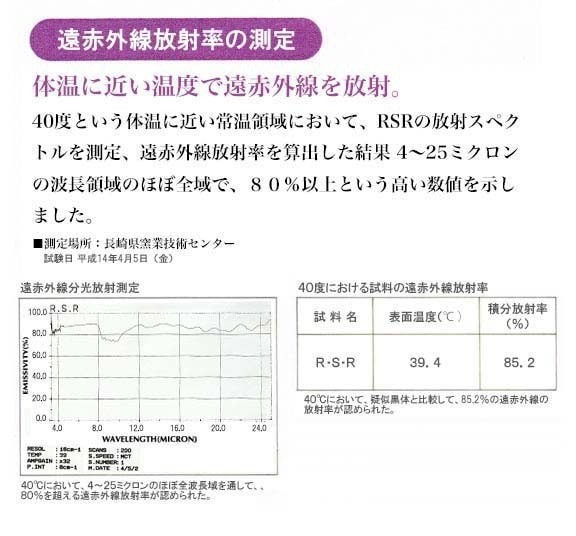 「RSR」セラミックは、常温域で遠赤外線とマイナスイオンを放射します。