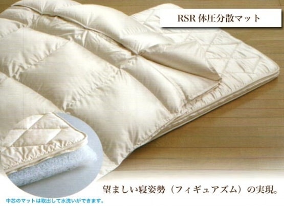 - RSR体圧分散マットは適度な沈み込みで体型を保持するので、体圧が分散されて快適な寝心地を得ることができます。床つき感がありません。